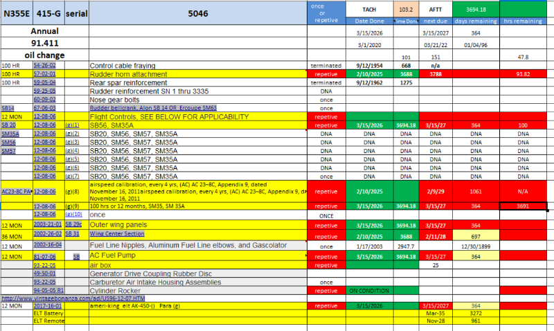As far as ADs, I use the FAA web site, when you do a search by airframe, you have the option of saving the search as a excel spreadsheet, I use that as the basis of my AD program, I have it set up to track all the ADs, and due times and dates as well as giving days and time remaining. see the attached photo