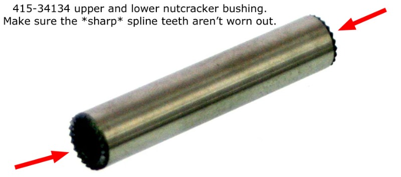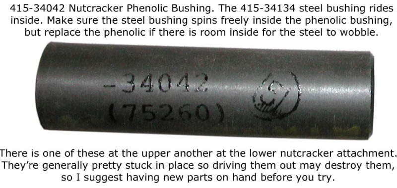 In my experience, my steel bushings were worn out to the point that they had smooth bumps instead of sharp teeth, and the nutcracker metal was worn. I managed to resurrect the nosegear with used nutcracker parts and new steel & phenolic bushings.