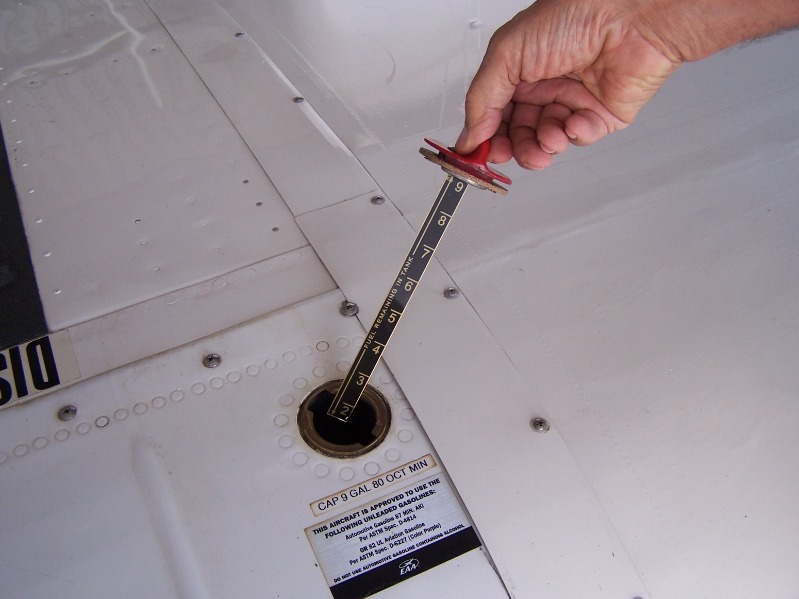 Wing fuel cap with attached dipstick was created by Charles Galloway