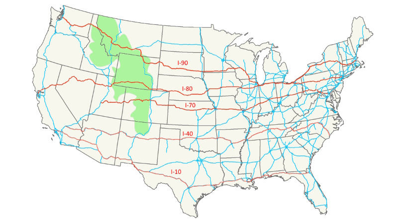 Scouring the wild wild web for flyways through the Rockies from New England, not much luck except for following 4 different interstates, I-40, I-70, I-80 & I-90. Anyone have flyways for crossing the Rockies in a 'Coupe?